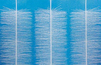 彈性立體填料篩選了聚烯烴類和聚酰胺中的幾種耐腐、耐溫、耐老化的優(yōu)質(zhì)品種,混合以親水、吸附、抗熱氧等助劑,采用特殊的拉絲,絲條制毛工藝,將絲條穿插固著在耐腐、高強(qiáng)度的中心繩上,由于選材和工藝配方精良,剛?cè)徇m度,使絲條呈立體均勻排列輻射狀態(tài),制成了懸掛式立體彈性填料的單體,填料在有效區(qū)域內(nèi)能立體全方位均勻舒展?jié)M布,使氣、水、生物膜得到充分混滲接觸交換,生物膜不僅能均勻的著床在每一根絲條上,保持良好的活性和空隙可變性,而且能在運(yùn)行過程中獲得愈來愈大的比表面積,又能進(jìn)行良好的新陳代謝,這一特征與現(xiàn)象是國內(nèi)目前其他填料不可比擬的。